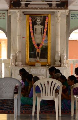 Swadhyay Mandup is built above the jinmandir in a Dev Vimaan shape. The mandup has been used for swadhyay, bhakti, reading and recitation sessions, and meditation.